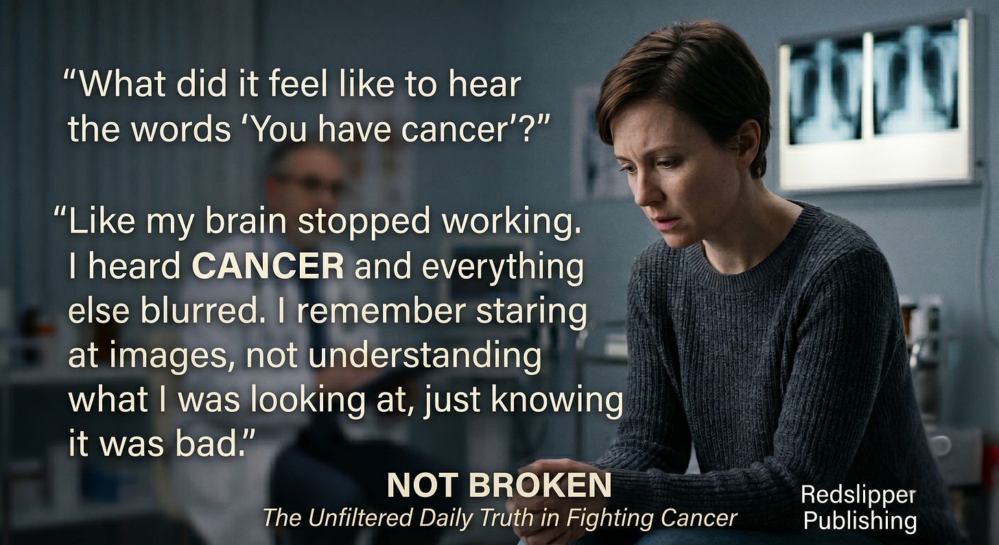I made him stop talking. I put my hand up like a stop sign. I really couldn’t comprehend anything he was saying. I heard cancer and froze. I don’t know how long I sat there. The doctor never made me feel rushed. When I was ready, he opened the folder and showed me all the pictures. What the hell was I looking at?